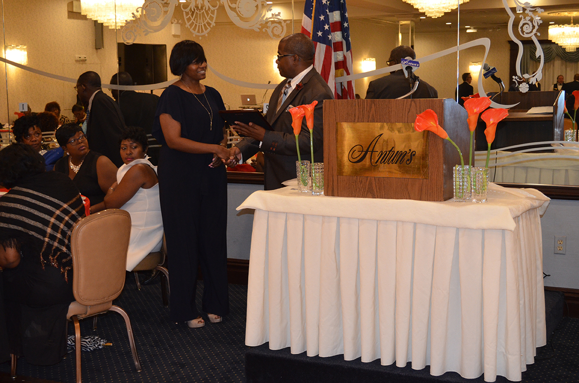 President Ronnie Hammick presents our inaugural Community Development Award to Ms Janice Julian Of Caribbean Food Delights